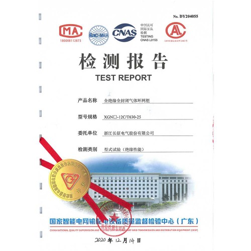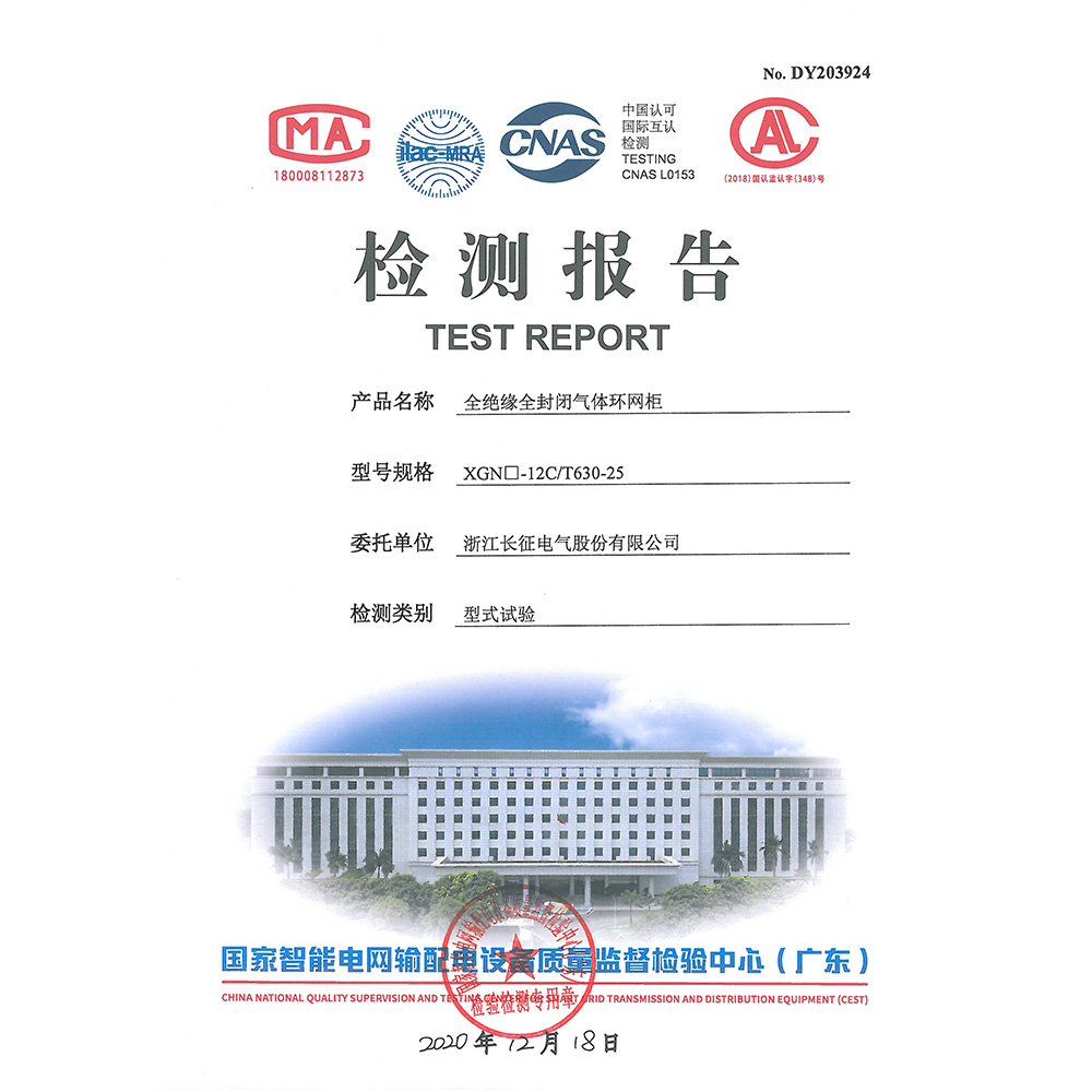 XGN□-12V/T630-25全绝缘全封闭气体环网柜 检测报告