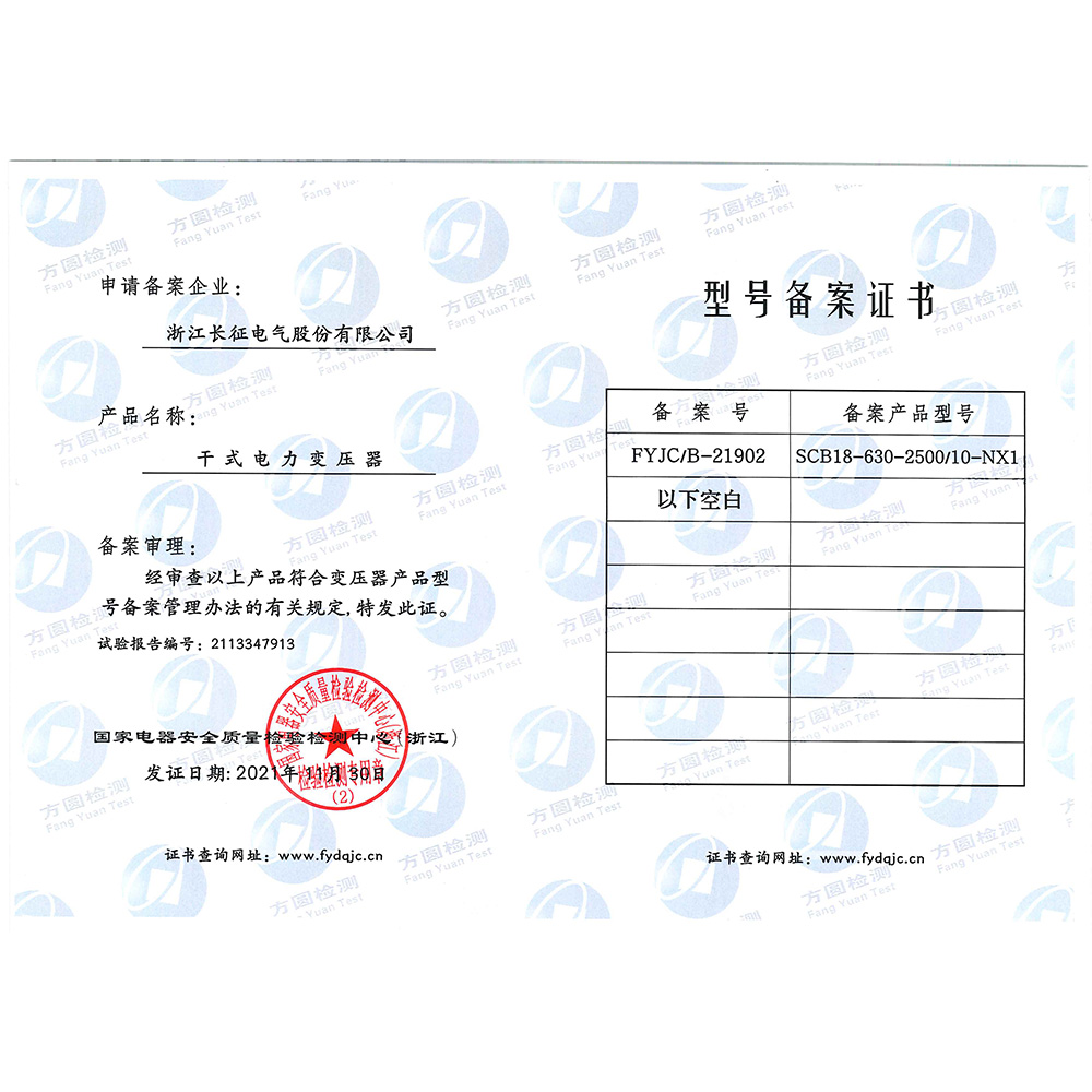 SCB18-630-2500/10-NX1干式电力变压器 型号备案证书