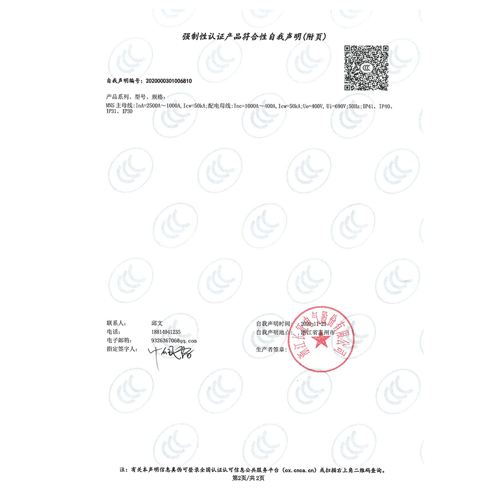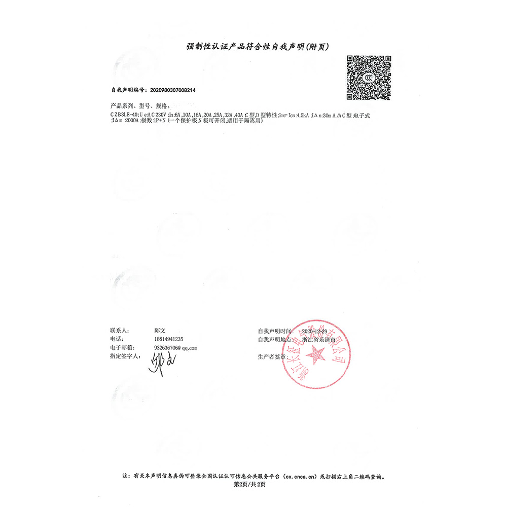 CZB3LE-40强制性认证产品符合性自我声明(附页)