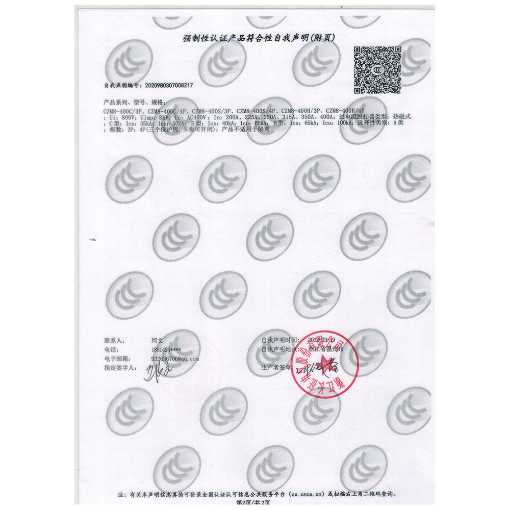CZM8-400C强制性认证产品符合性自我声明(附页)