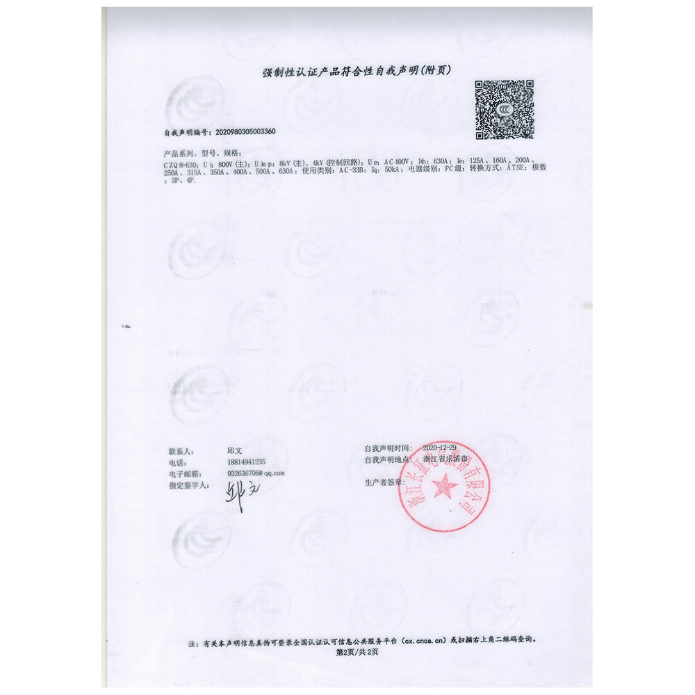 CZM8-630C强制性认证产品符合性自我声明(附页)