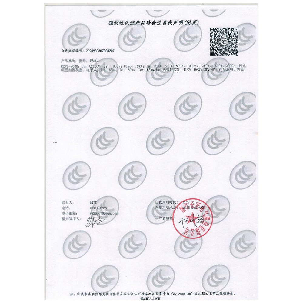 CZW1-2000强制性认证产品符合性自我声明(附页)