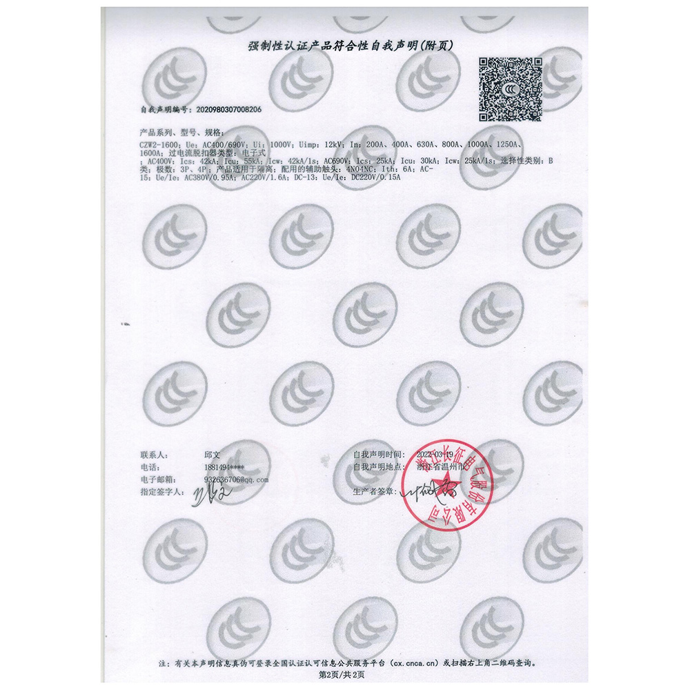 CZW2-1600强制性认证产品符合性自我声明(附页)