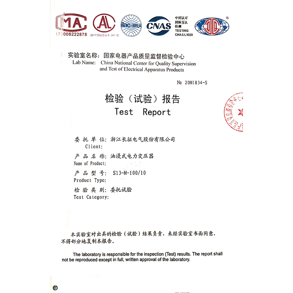 S13-M-100/10油浸式电力变压器 检验报告