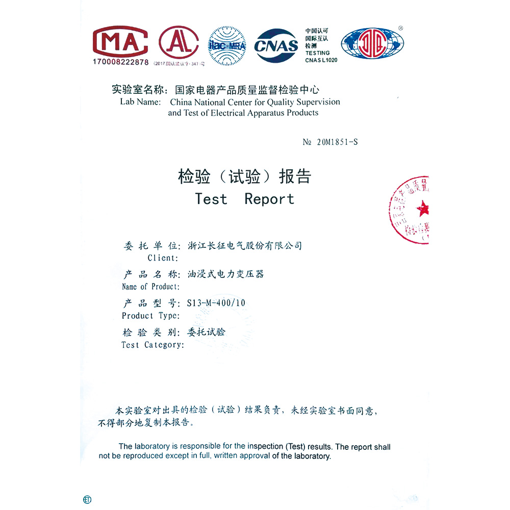 S13-M-400/10油浸式电力变压器 检验报告