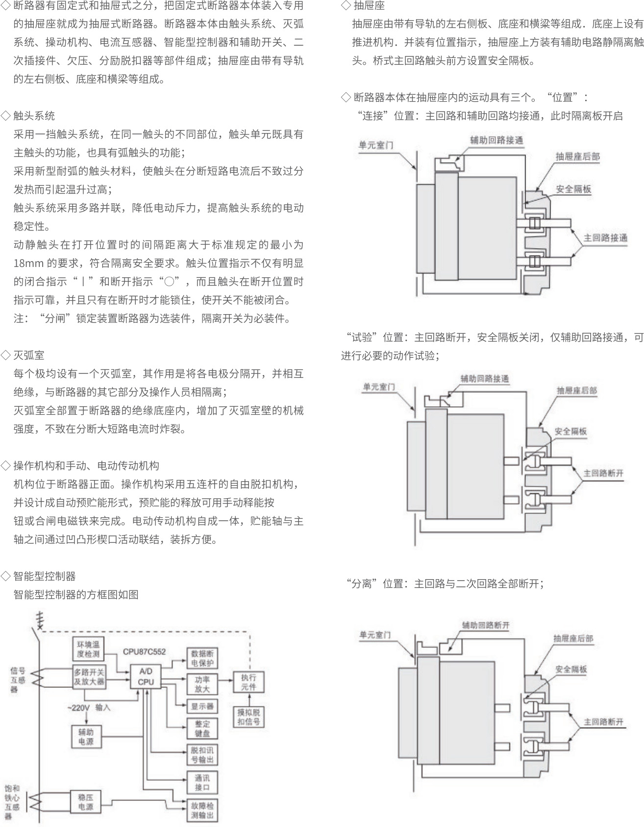 7、断路器安装在柜体小室内,防护等级达 IP40;加装门框,防护等级达 IP54。